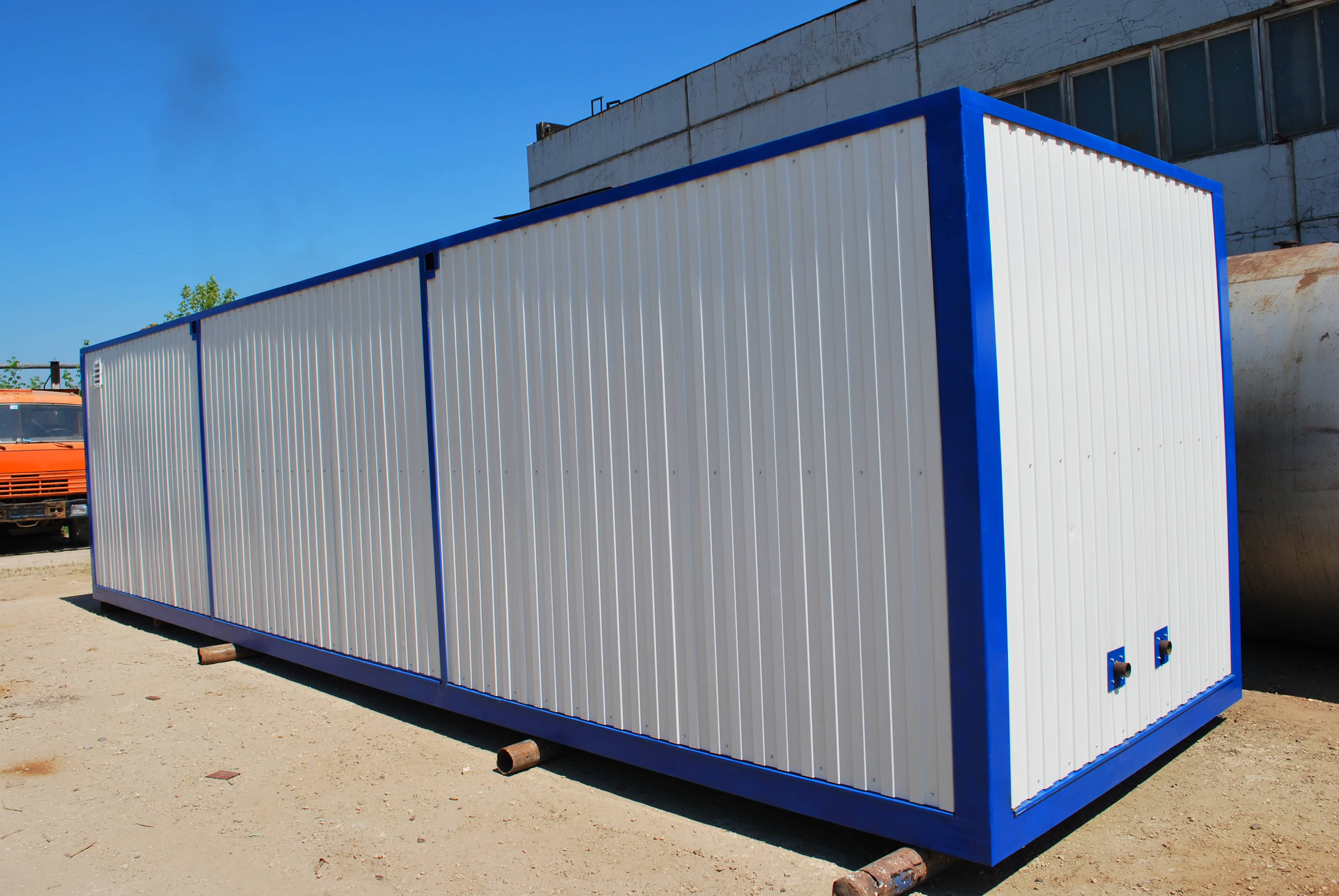Станция очистки бытовых сточных вод "ТВЕРЬ-25С" представляет из себя утепленное здание из блок-модулей, установленных на фундаменте, со всем технологическим оборудованием внутри.