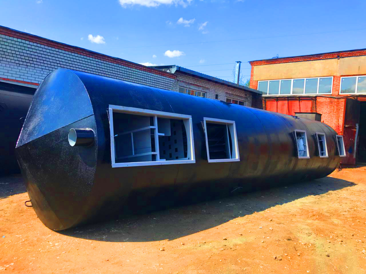 Очистное сооружение "ТВЕРЬ-400" производительностью 400 м3/сут. очищает стоки согласно нормам ПДК. Возможно изготовление с самотечным или принудительным отводом согласно нуждам заказчика.